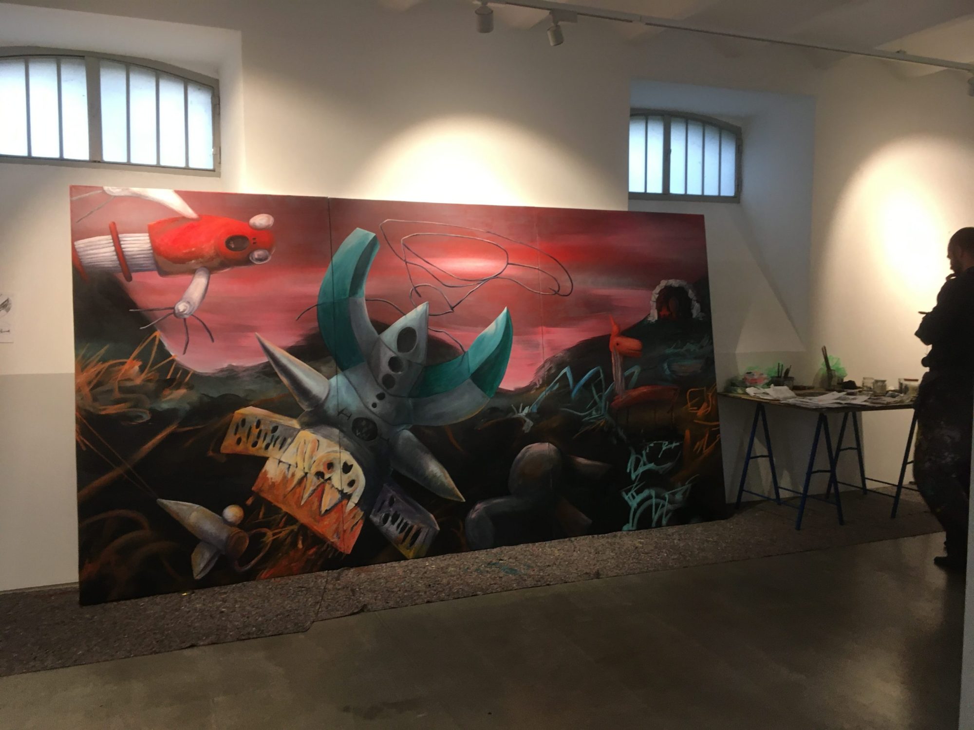 Hannah: Wie ist es dazu gekommen, dass du hier in der Ankerbrotfabrik malst. Kannst du uns darüber biss’l was erzählen?