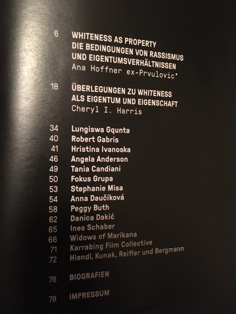 Rassismus und Eigentumsverhältnisse, darum geht es in der Ausstellung >>WHITNESS AS PROPERTY<< im Künstlerhaus, wobei „property“ einerseits den Besitz und andererseits die Eigenschaft von etwas benennt. Die Ausstellung führt im „Kreis“ durch verschiedene Räume, in denen KünstlerInnen Ihre Positionen darstellen. Die Wände sind in schwarz und weiß gehalten, Bilderrahmen und Regale in hellem Holz. Es gibt viele Screens, die Videos, Fotos und auch Musik spielen. Deshalb auch für Sehbeeinträchtigte zu empfehlen, siehe Hannes Review am Ende vom Beitrag.