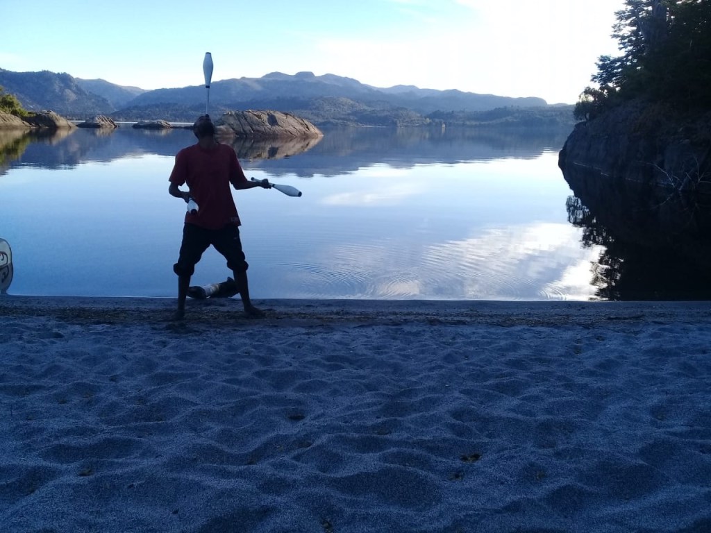 S: Hacia el 2017 empecé a hacer malabares, en medio de un viaje por Sudamerica. En ese momento viajaba con un amigo por Colombia. Él me enseñó lo primero sobre los malabares a lo largo de algunos años, porque somos amigos de la infancia.Principalmente recuerdo mis primeras practicas en Buzios, Brasil, donde viví por casi dos anios.