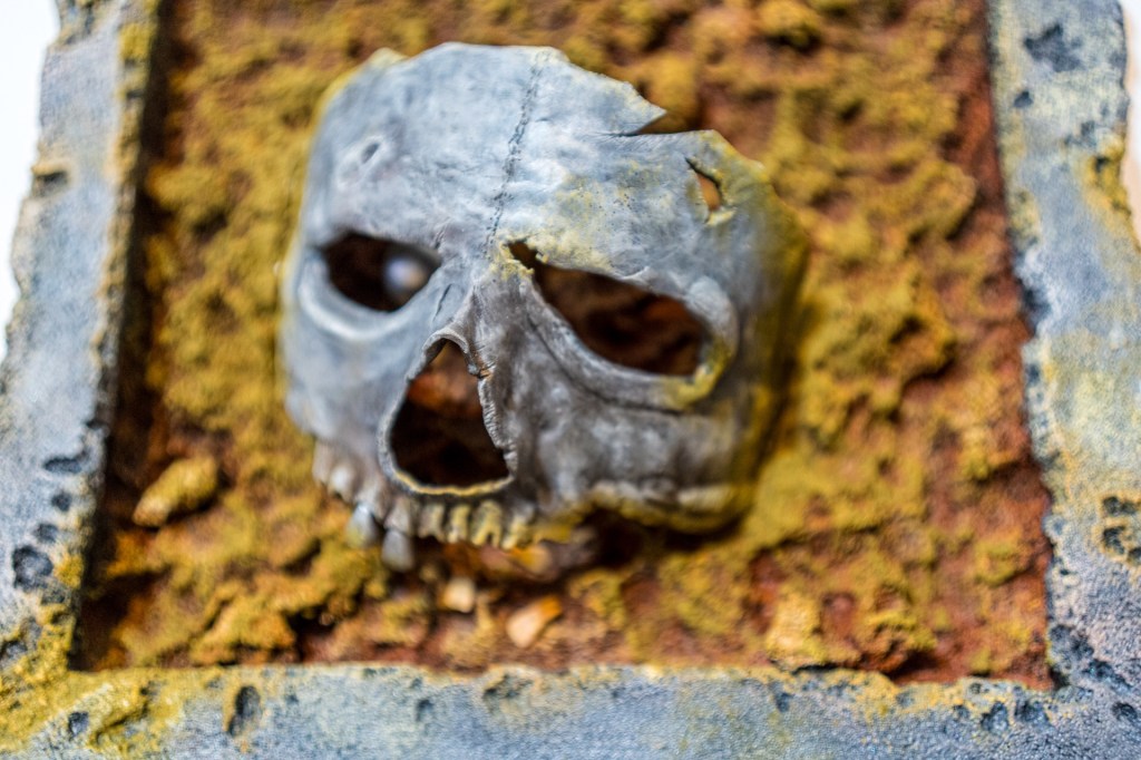 Nein, ich brauch eigentlich nur zum Malen hier die Wand. So wie es da hängt. Ich hab zwei Nägel in die Wand g‘haut und mach das eigentlich alles hier. Mit der Fabrik am Rücken und das Skelett.