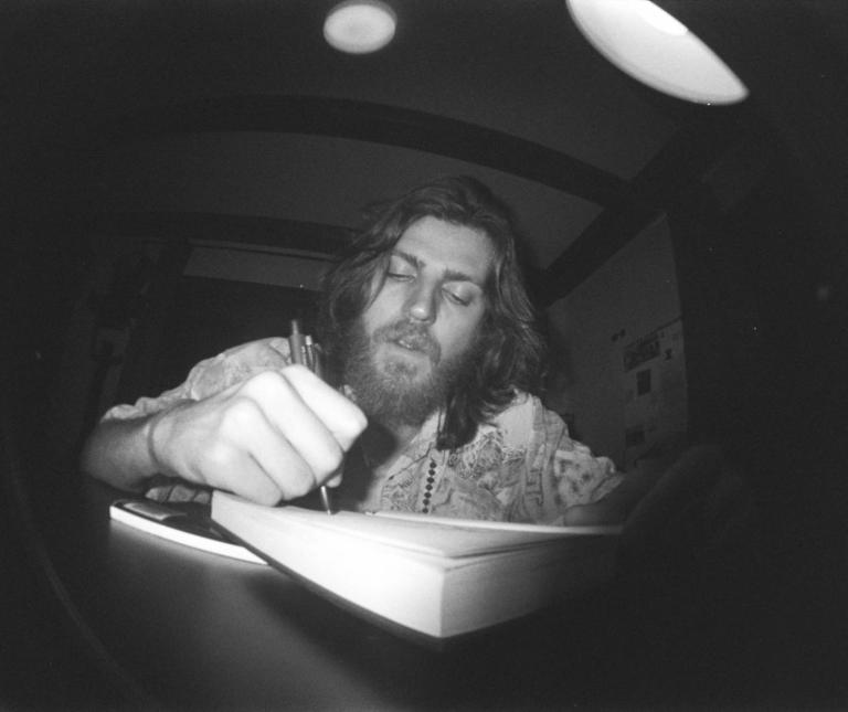 Bunte Sketches, surrealistische Figuren und funky Einflüsse von Comics – so könnte man die Kunst von Michael Friedl aka „The Wizard of Melleck“ beschreiben. Seinen echten Nachnamen Friedl findet er zu bürgerlich. Der Wizard trägt weite Kleidung und einen Vollbart. Als ich ihn in der Bräuhausgasse in Wien treffe, erzählt er von seinem Geburtsort, einem Dorf mit nur einer Straße und zehn Häusern. Diese ländliche Herkunft inspirierte seinen Künstlernamen „Wizard of Melleck“, eine Anlehnung an den Zauberer von Oz, der ebenfalls aus einem magischen Ort kommt.