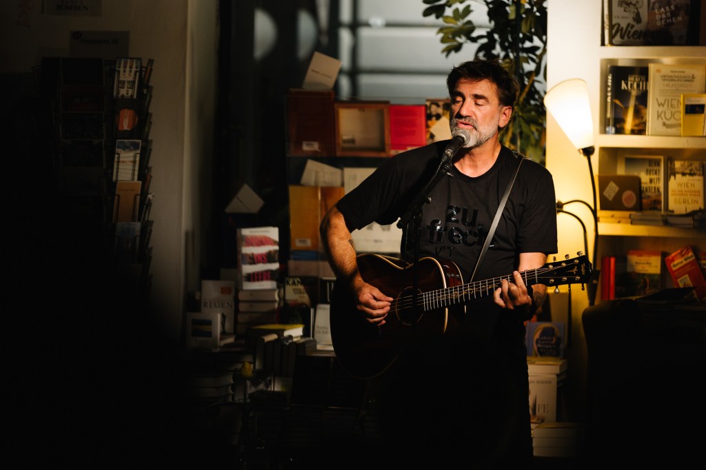 Derzeit bin ich lieber Dichter. Eine brutale Antwort insofern, das klingt biss`l wie ein Handicap für mich. Ich höre seit einiger Zeit keine Melodien. Ich hab` eine Zeit gehabt, da hat mich das musikalische der Welt erfasst und ich habe Lieder gehört. Nur dieser Urimpuls, der mich derzeit trifft, den ich brauche als Künstler, der direkteste Impuls ist nicht das, was ein Lied ausmacht, sondern das, was einen Poeten, ein Gedicht ausmacht. Und das Musik weglassen, das macht mich seit zwei Jahren komplett frei fürs Gedichte schreiben. Da ist das Maximum an Verdichtung drin.