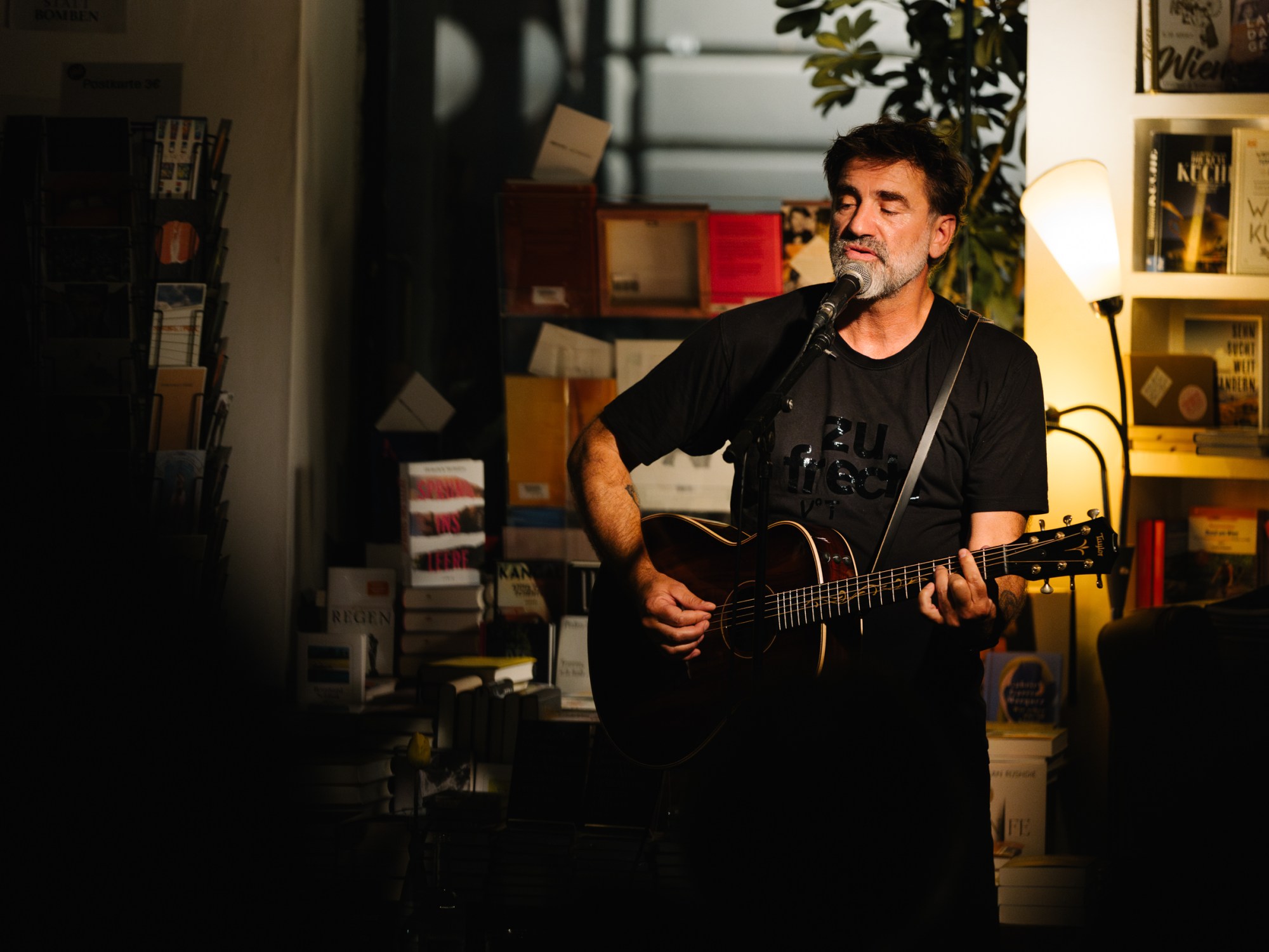 Derzeit bin ich lieber Dichter. Eine brutale Antwort insofern, das klingt biss`l wie ein Handicap für mich. Ich höre seit einiger Zeit keine Melodien. Ich hab` eine Zeit gehabt, da hat mich das musikalische der Welt erfasst und ich habe Lieder gehört. Nur dieser Urimpuls, der mich derzeit trifft, den ich brauche als Künstler, der direkteste Impuls ist nicht das, was ein Lied ausmacht, sondern das, was einen Poeten, ein Gedicht ausmacht. Und das Musik weglassen, das macht mich seit zwei Jahren komplett frei fürs Gedichte schreiben. Da ist das Maximum an Verdichtung drin.