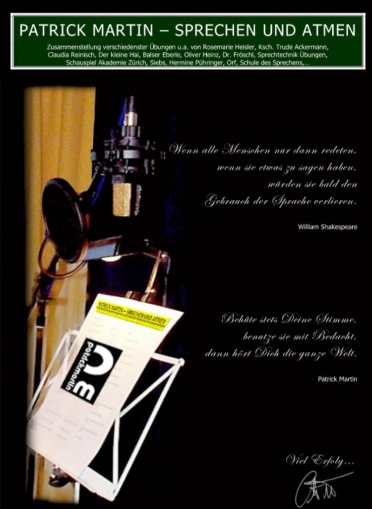 Zurück in Wien, merkte Patrick, dass ihm die Kunst fehlte und er bewarb sich kurzerhand an verschiedenen Schauspielschulen. Aufgenommen wurde er am Franz Schubert Konservatorium. Das Studium schloss er mit Auszeichnung ab. Arbeitete danach auch als Schauspiellehrer und veröffentlichte sein erstes Buch für Schauspiel-Stundent*innen mit dem Fokus auf Sprechen und Atmen, mit Material, das er davor auch schon für den Unterricht eingesetzt hatte.